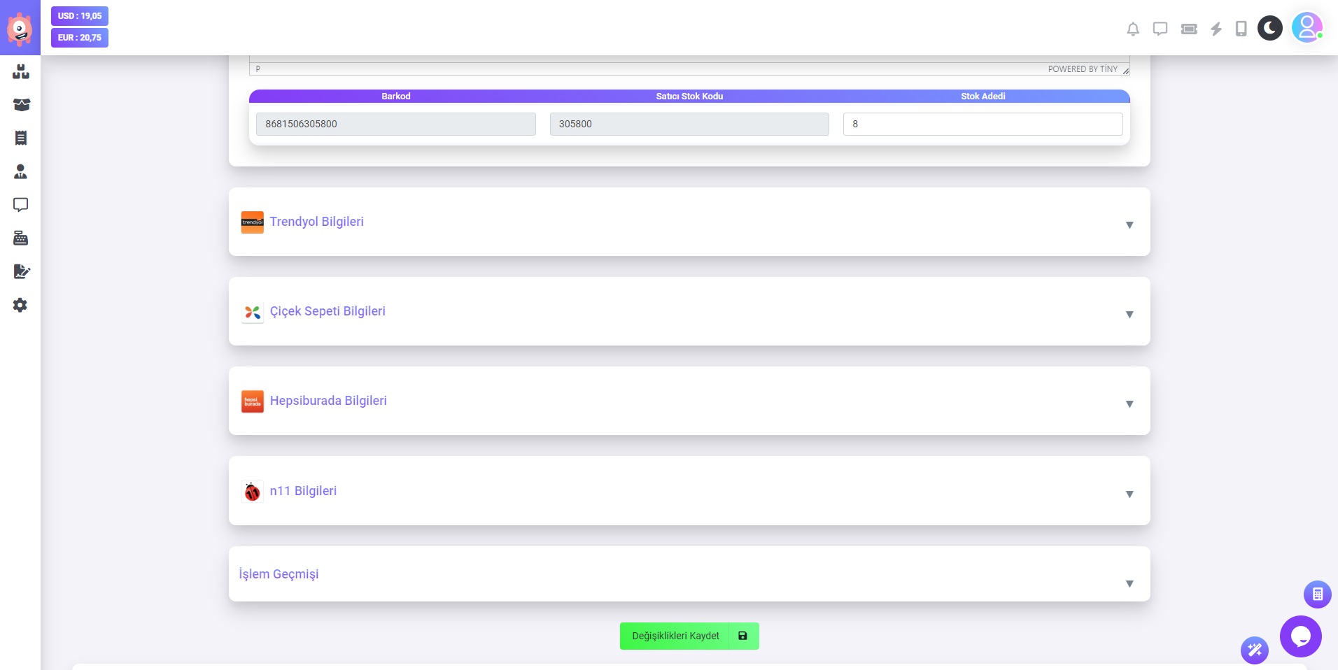 Tüm pazaryerlerinde ve websiteniz de stok güncelleme işlemi gerçekleşmiştir.